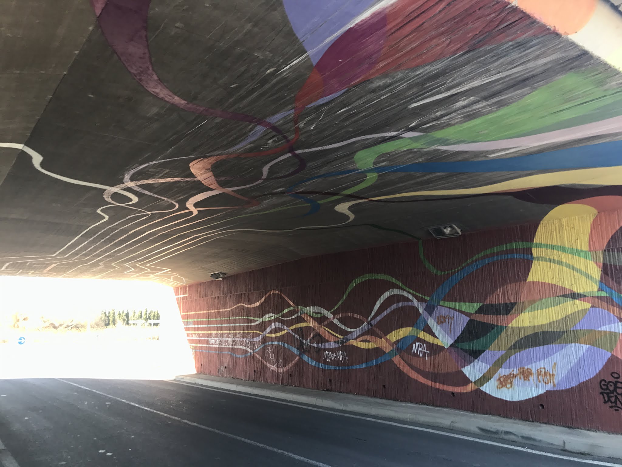 En allant à la Galerie Ephémère, je passe par la route de Palavas et en parallèle par l'allée Gramenet à Lattes. Un tunnel passe sous la route de Palavas. Il est décoré par je ne sais plus qui. Je ne retrouve plus dans mon fil d'actualité instagram les publications de ces photos. Pas de trace sur google non plus, c'est compliqué.